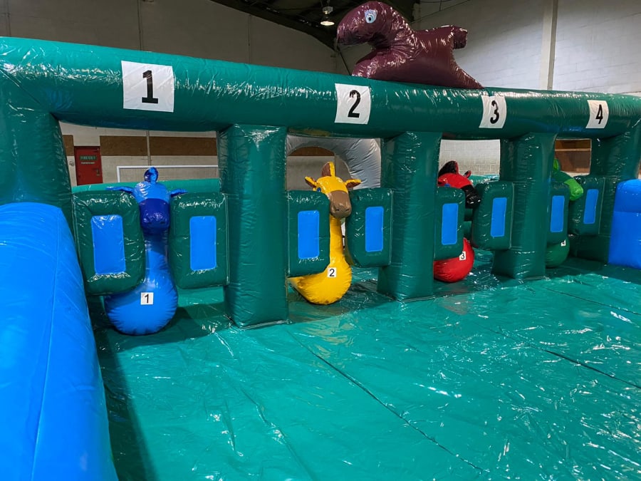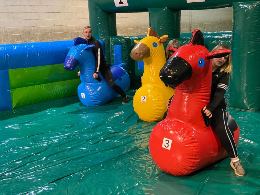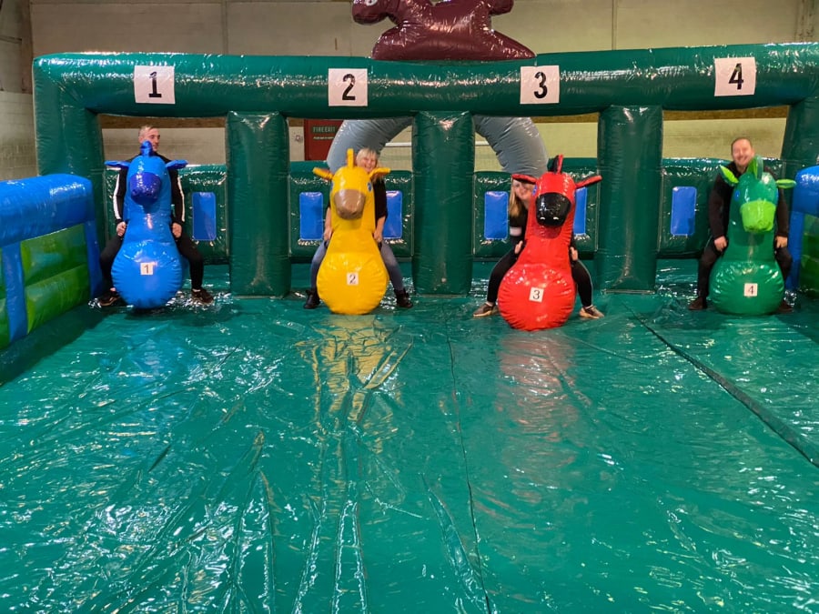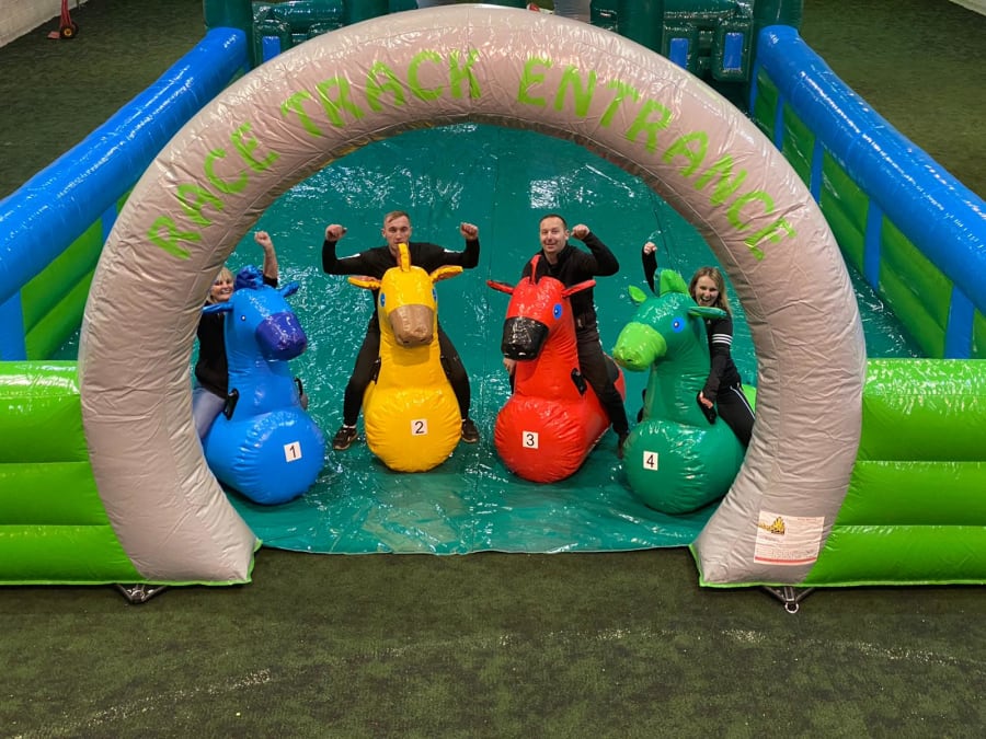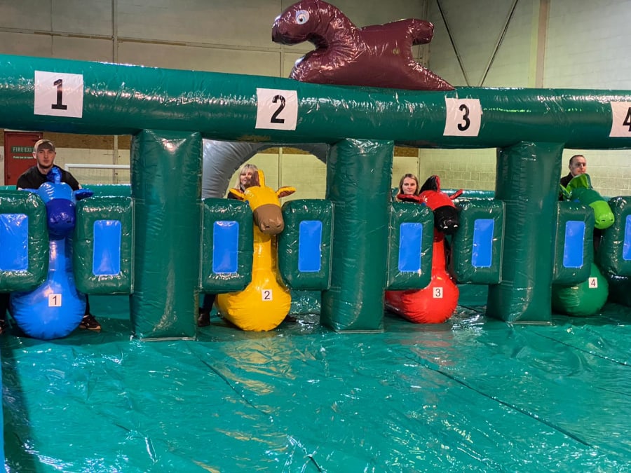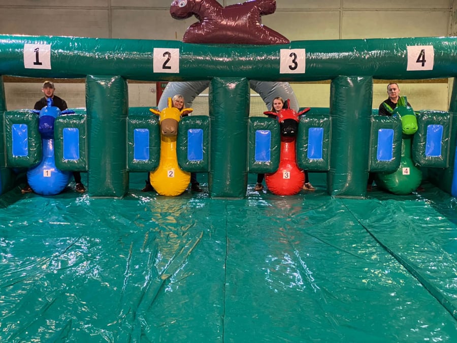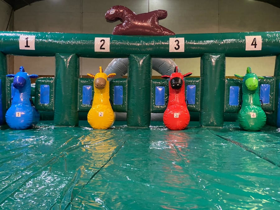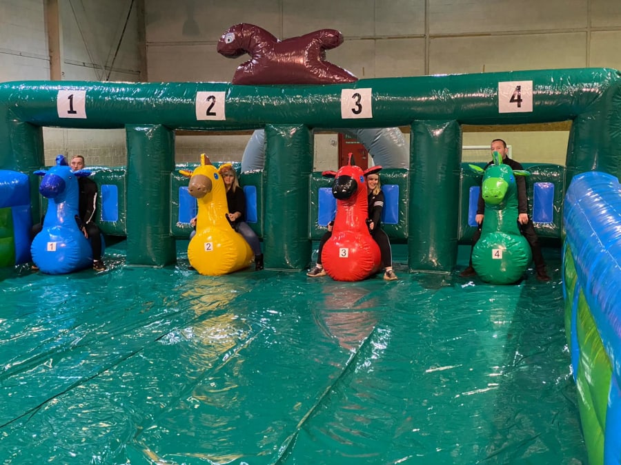 Just imagine the chaos as your guests, or your colleagues, try to get around the inflatable course on their hopper. It’s laugh out loud funny, and it’s made all the more hilarious by the fact that each hopper is looks like as a racehorse.